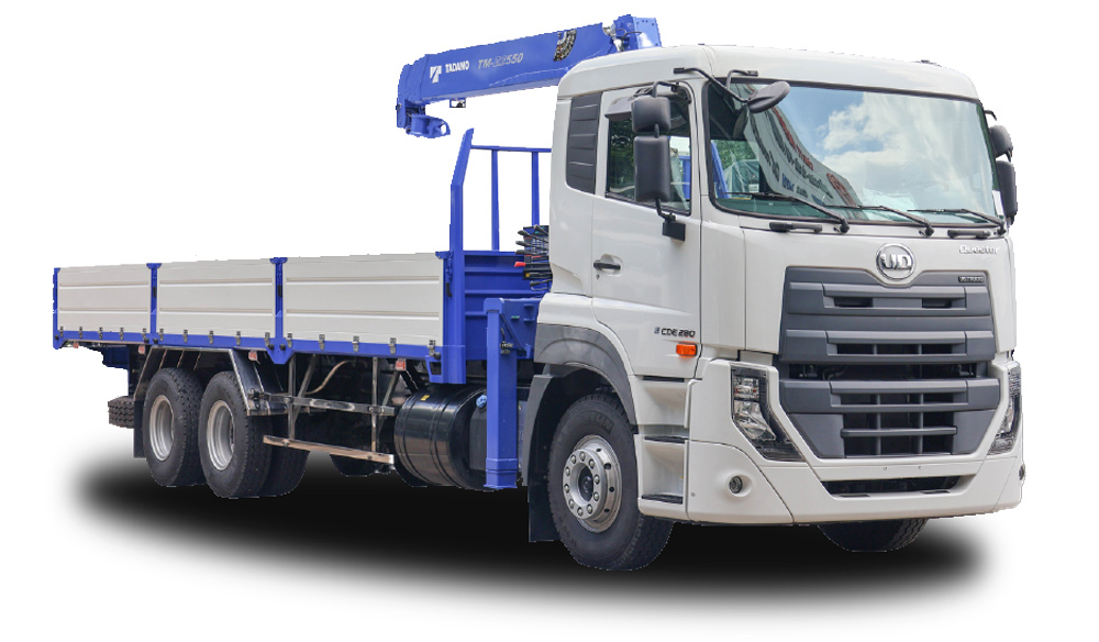 UD CDE280 gắn cẩu 5 tấn với ngoại thất ấn tượng, nội thất tiện nghi, động cơ mạnh mẽ và đặc biệt là chassis 2 lớp cứng cáp bền bỉ, chiếc xe này đã chinh phục lòng tin của nhiều nhà thầu và doanh nghiệp trong việc lựa chọn phương tiện vận chuyển và nâng hạ hàng hóa.